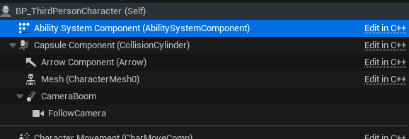 - Navigate and open the Blueprint for your Character or Pawn (or PlayerState if you're using it to hold the Ability System Component)