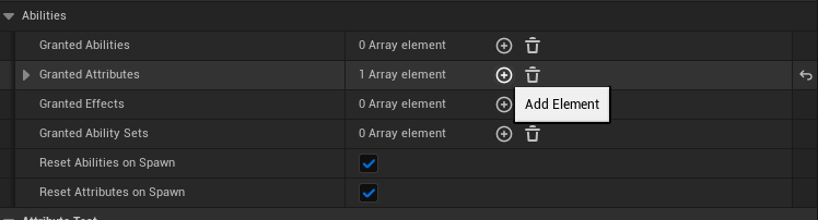 Now, to properly use this new AttributeSet, you need to grant it to your Characters' ASC. You can can do so per actor directly on the Ability System Component properties in Blueprints.