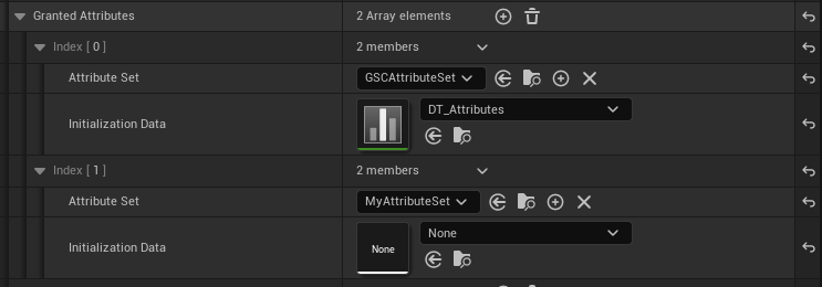 Initialization Datato set default values for your Gameplay Attributes. You can find more details for doing so in the Getting Started section.
