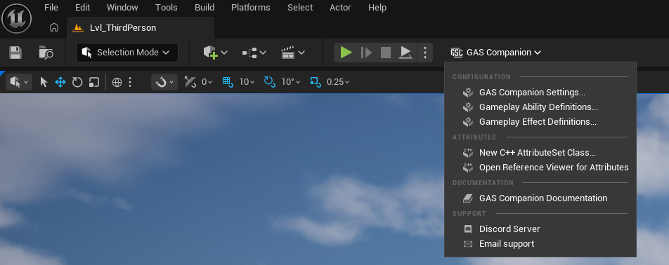 From there, you can get quick access to the Plugin Configuration in Project Settings, View online documentation or Join our Discord Server.